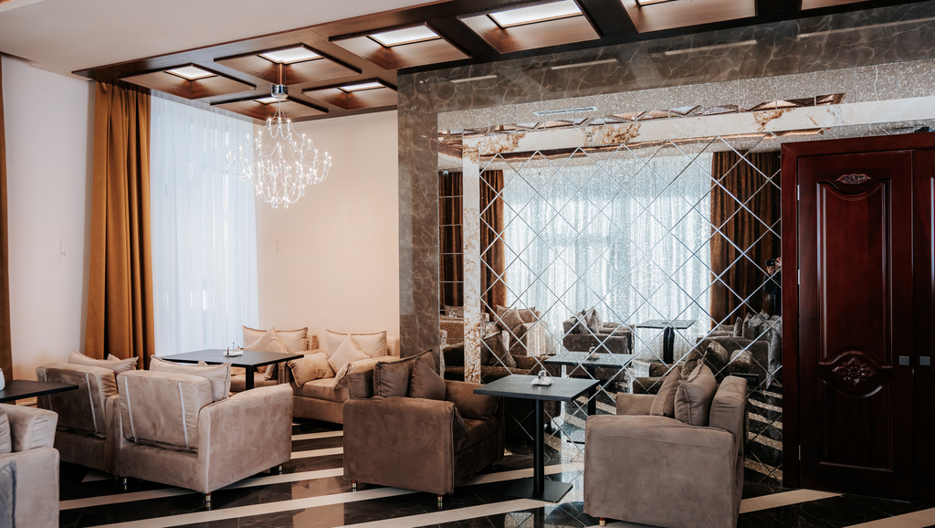 Spacious interiors furnished with soft, elegant furniture